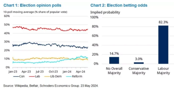 Le Premier Ministre Rishi Sunak a lancé la course pour constituer le prochain gouvernement. Une élection générale est prévue pour le 4 juillet, et selon les sondages et les marchés de paris, le gouvernement actuel pourrait faire face à un défi difficile. Comment se porte l’économie et les marchés britanniques alors que l’on se dirige vers cette élection?